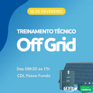 Cronograma: Conceitos sistemas Off Grid; Soluções integradas; Calculadora Off Grid; Módulos fotovoltaicos; Controladores de carga; Inversores; Tecnologia de baterias; Instalando conectores CC; Associação série & paralelo; Instalação; Boas práticas; Manutenção corretiva e preventiva; Parametrização dos produtos; Dimensionamento sistemas e integração de portfólio.